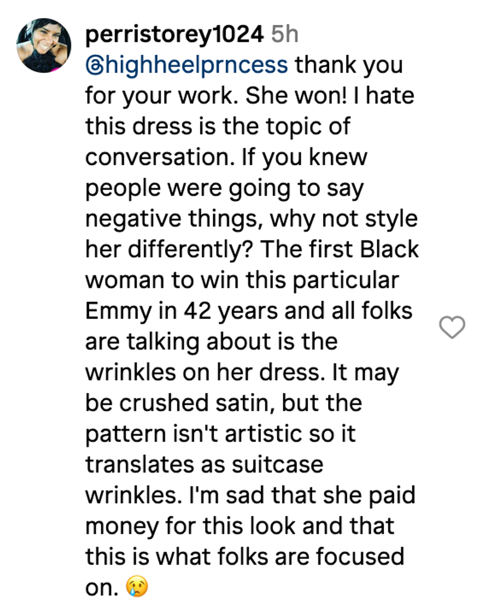 Brunson's stylist, Jessica Paster—a.k.a. @highheelprncess on Instagram—defended the Emmy winner's look in the @checkthetag Instagram page's comments section.