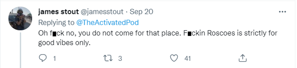 The only reason racist go to Roscoe\u2019s or Dinah\u2019s is to start some ish. They hadn\u2019t any intention of eating - and clearly haven\u2019t the slightest clue the kracken they\u2019ll awaken. Roscoe\u2019s has mucho flex behind them & the devoted clientele far out# the deplorables. #DontLetItHitYapic.twitter.com/GciHQvqtQz— MsWinTheClouds (@MsWinTheClouds) 1632636320
