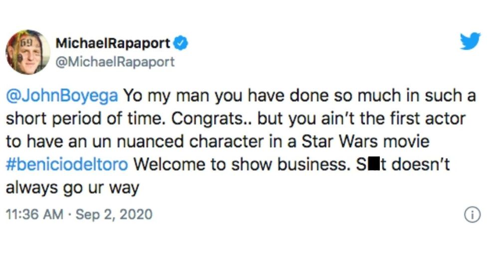 And White comedian Michael Rapaport—who seems to have a penchant for injecting his opinions into Black people's affairs on Twitter—for some reason had plenty to say to Boyega.