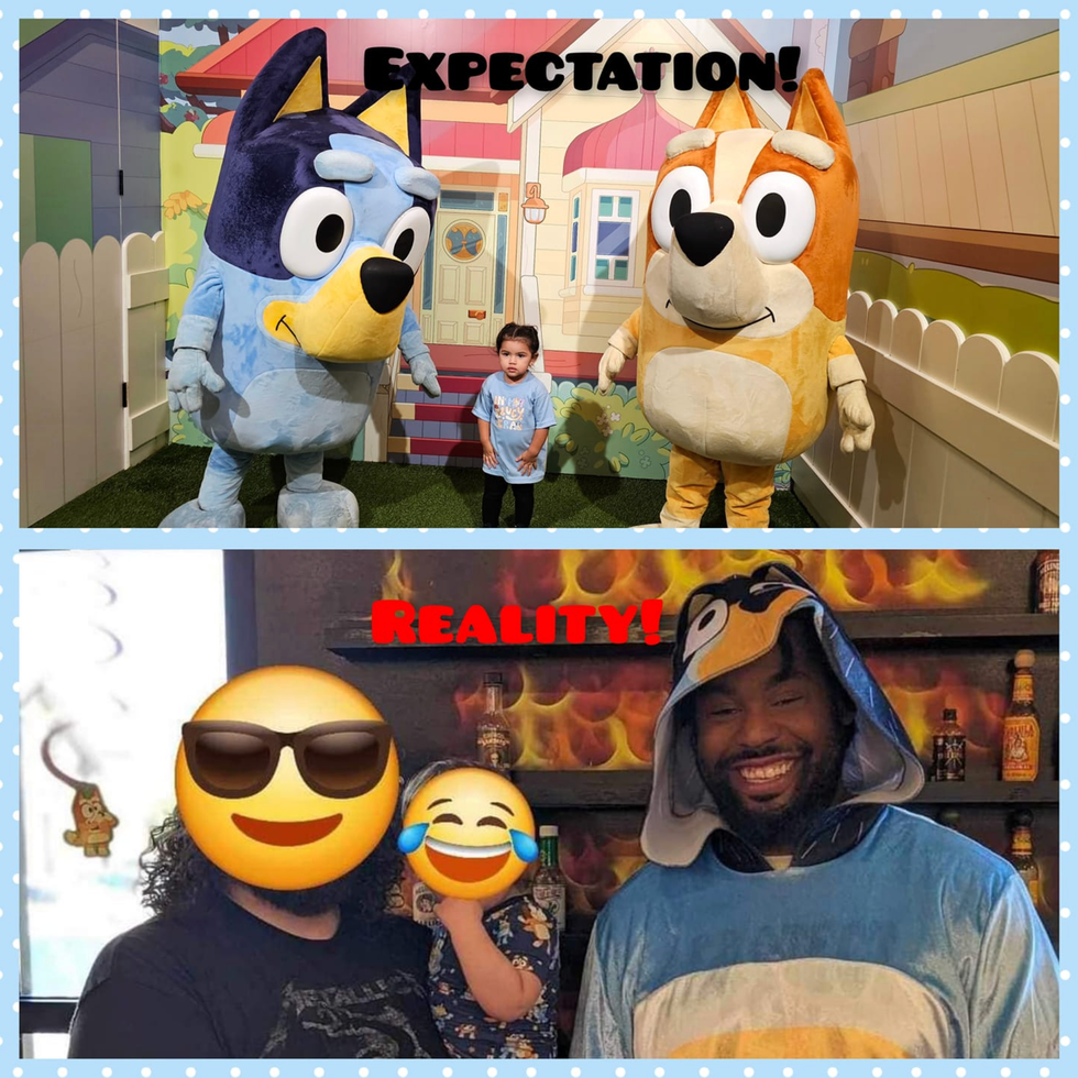 Pssssst Vegas restaurant.....theres this special group of ppl known a fursuiters that have/make VERY real and high end cosplays of charaters like bluey n gang....you should look into them to do events like this for kids 👀