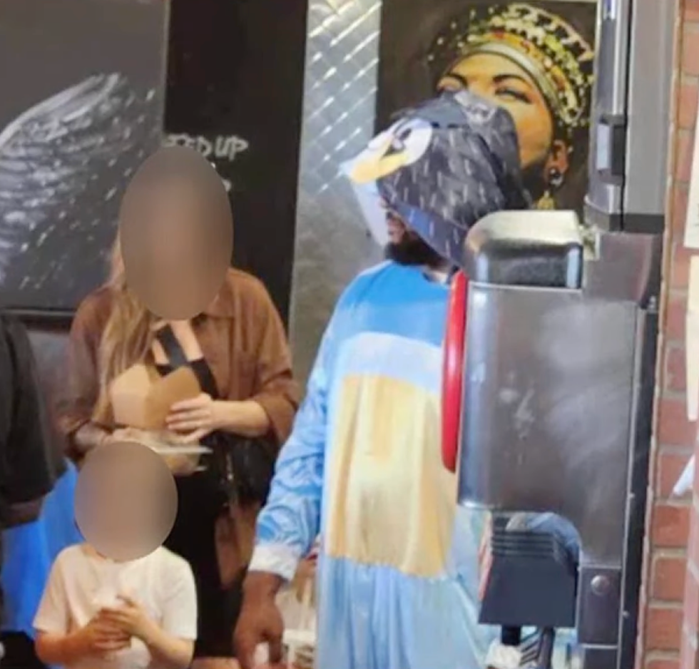 And exhibit B: A Dirt Dog employee passing himself off as Bluey in a blue onesie and his face partially exposed.