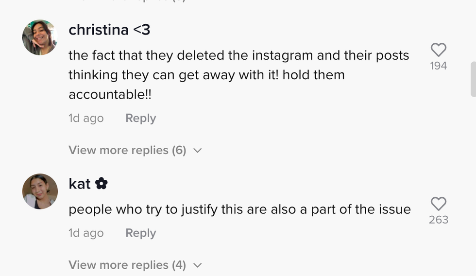 While the Instagram account was deleted, a TikTok follower preserved some of the images and videos, and shared them on her own page to hold the school as well as the students in the images accountable.