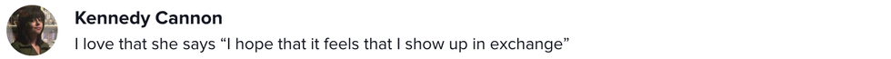 "And I hope that it feels that I show up in exchange and that's what... that's the whole point."