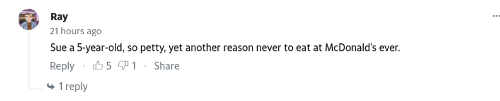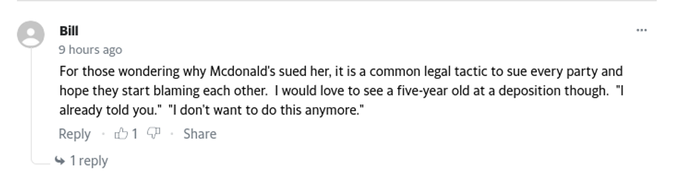 One commenter even set out to explain why McDonald's would include a child in their lawsuit.
