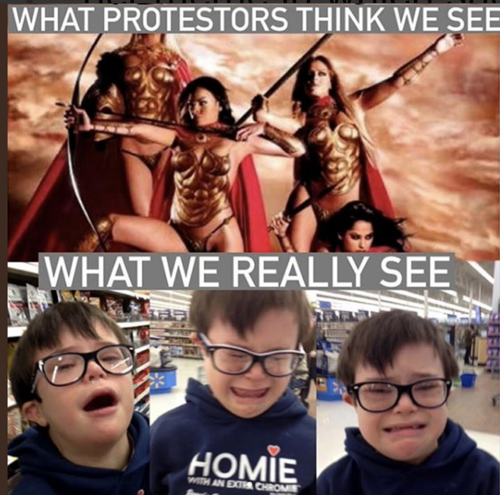 The image compared liberal protesters to Palin's 10-year-old son Trig, who's seen crying in the apparently homemade meme: