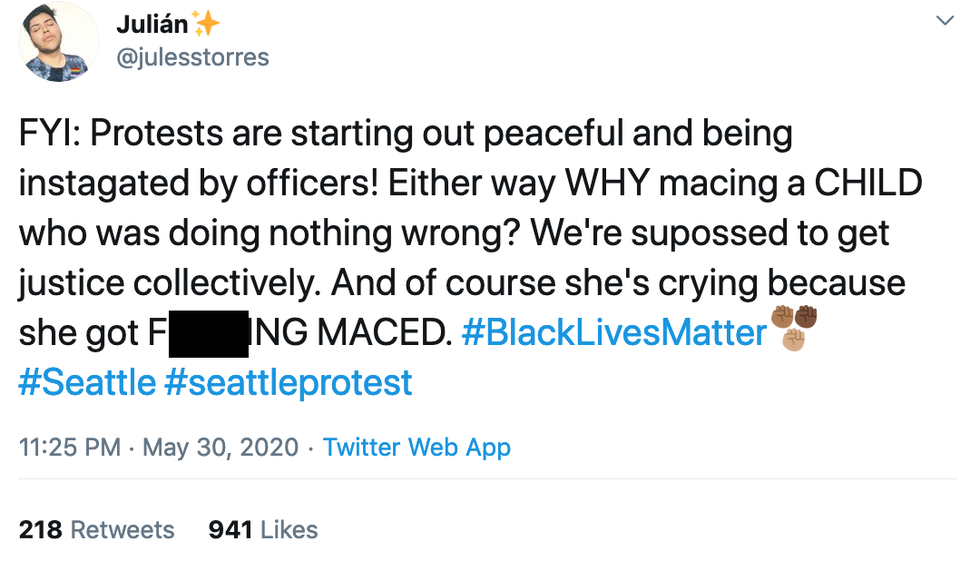 CORRECTION 5:30pm ET June 2, 2020: An earlier version of this article said the officer identified on the scene was the one who pepper sprayed the little girl but Seattle Police have concluded he was not the officer who did so. We edited accordingly and swapped out the featured image to reflect this change.
