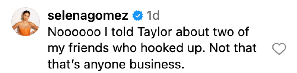 Gomez herself commented on the post, spilling about the conversation that actually took place.