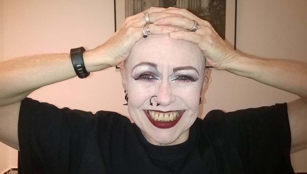 “After losing them during chemotherapy, my eyebrows haven't grown back, but now I use my new-found make-up skills to make them bright and colorful. They're usually purple, but I've had them pink and blue too."
