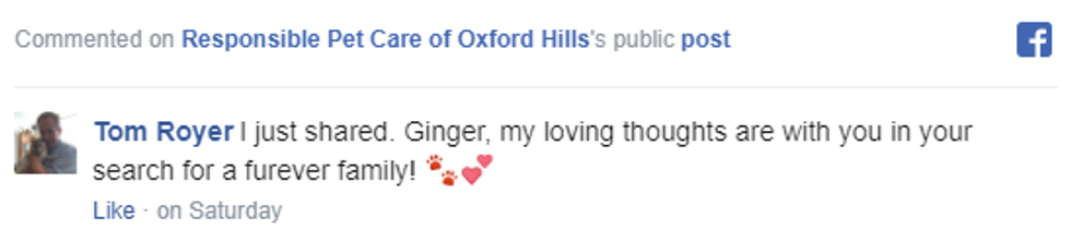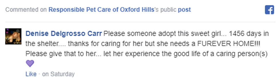 Almost 1,500 days ago, Ginger was brought to Responsible Pet Care of Oxford Hills as a stray. She lives a comfortable life there, and is loved by the staff, but after nearly four years, they've decided it's time to find Ginger a permanent home.