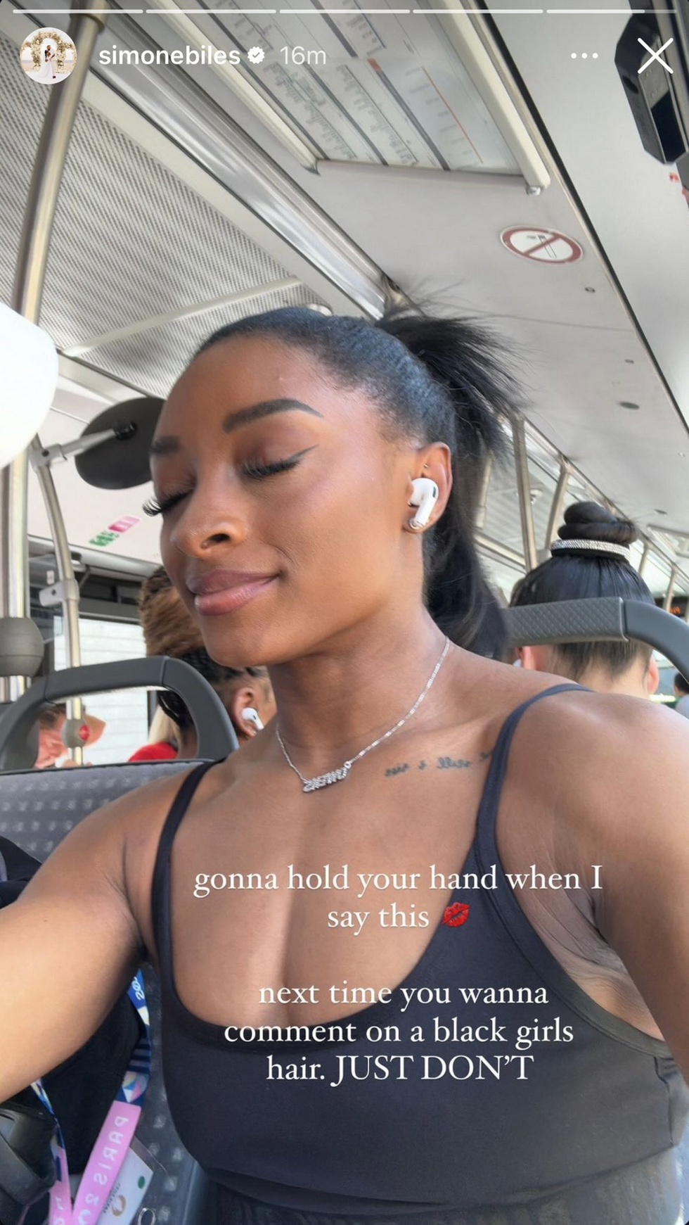 On July 30, the 27-year-old, who with the U.S. women's gymnastics team would win the gold medal at the 2024 Paris Olympics, posted an Instagram video selfie on the way to the women's gymnastics team final.