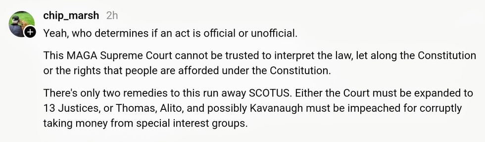 "Orders the Navy’s Seal Team 6 to assassinate a political rival? Immune. Organizes a military coup to hold onto power? Immune. Takes a bribe in exchange for a pardon? Immune. Immune, immune, immune."