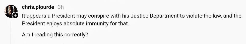 "Today's decision to grant former Presidents criminal immunity reshapes the institution of the Presidency. It makes a mockery of the principle, foundational to our Constitution and system of Government, that no man is above the law."