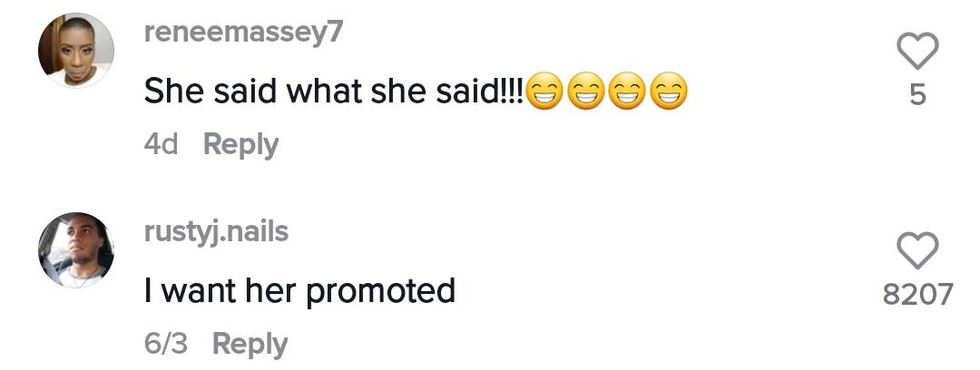 At this point, she jokes with a few people briefly before hopping back in to do her standard Customer Service voice closing: