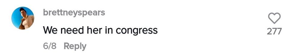 The video picks up the tail end of her speech, given with a casual natual voice: