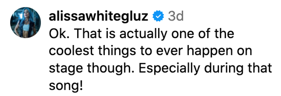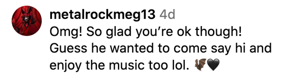 During her performance in Seville, Spain, at the La Cartuja Stadium, a bat landed on her leg while she was singing “Witches Burn.” Unaware of the bat at first, Momsen continued performing until she noticed the crowd's reaction and saw the bat clinging to her leg.
