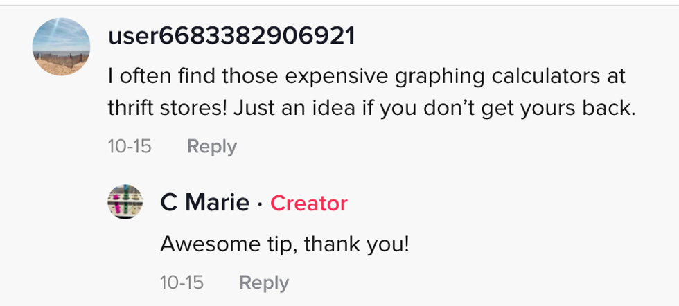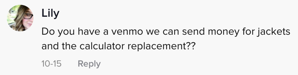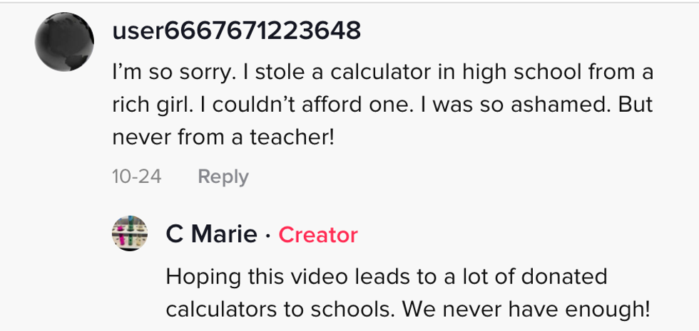 She told whomever stole her classroom calculator she couldn't afford to replace it.