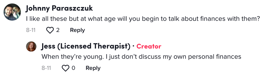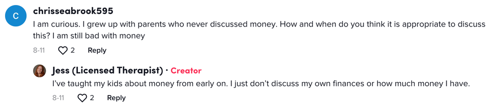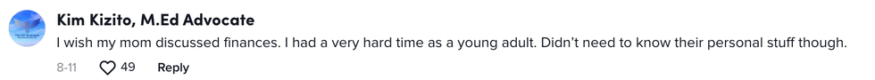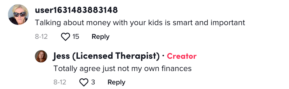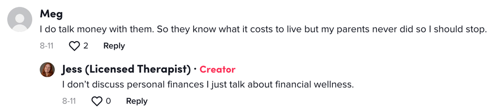 Some users disagreed with MacNair's stance on discussing finances with her children. However, she did clarify that teaching children financial literacy is important, but they should not be burdened or concerned with their parents' personal financial situation.