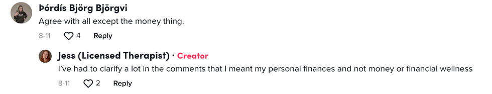 Many responded to her video seeking clarification, mostly about number 5 - using food as a reward - and number 3 - finances.