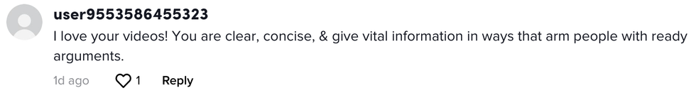 She later uploaded a follow-up video to her TikTok account in which she took her critics to task for attacking bodily autonomy, noting that there is a history in the United States of politicians attacking "historically marginalized communities," particularly "women, people with uteruses... trans individuals, and intersex youth."