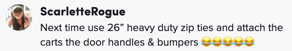 When a person double-parked their Mercedes outside the store, several customers fought back by putting their shopping carts all around it until it was surrounded by a veritable wall of the things.