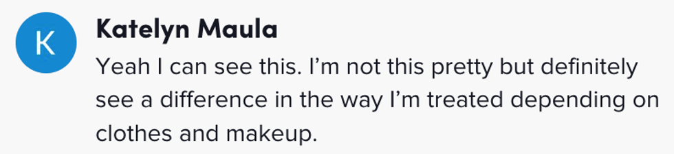 "Pretty privilege is a thing, I'm not here to deny that, though, too, it comes with disadvantages."