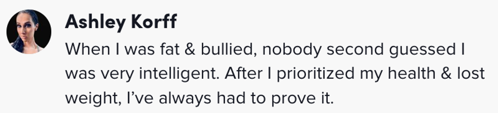"And I was once passed up on for a business opportunity because they thought I was too young and beautiful, and they thought that that would 'be distracting' for other people in the industry."