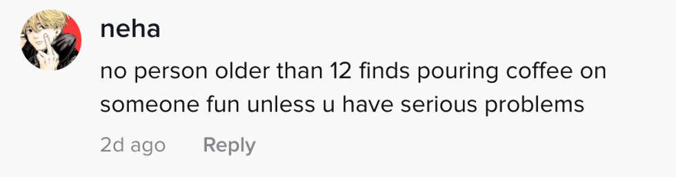 A TikToker is getting backlash after pulling a very cruel "prank" on passers-by, which involved him dumping coffee over a balcony onto a stranger and then sprinting away so he wouldn't get caught.