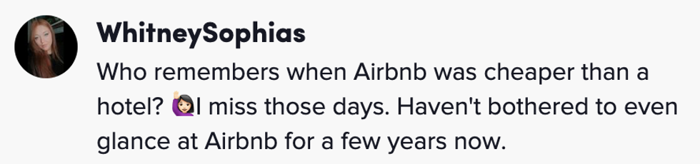 People reflected on a different time when AirBnb was the obvious alternative to staying at a hotel.