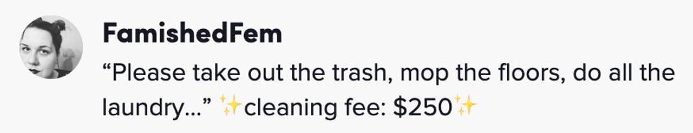 “When you check out, please take out the trash, mop the floors, wash the dishes, do all the laundry, and make the beds."
