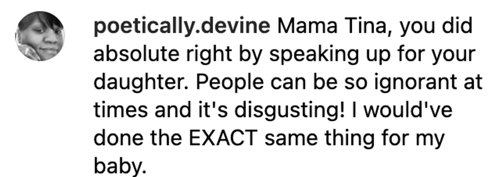 And others in the comments also applauded "Mama Bear" for standing up for her child.