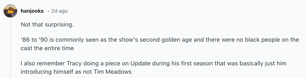 People weighed in on the cultural environment in the earlier years of the show and on Morgan's career on the Live From New York subReddit and Entertainment subReddit threads.