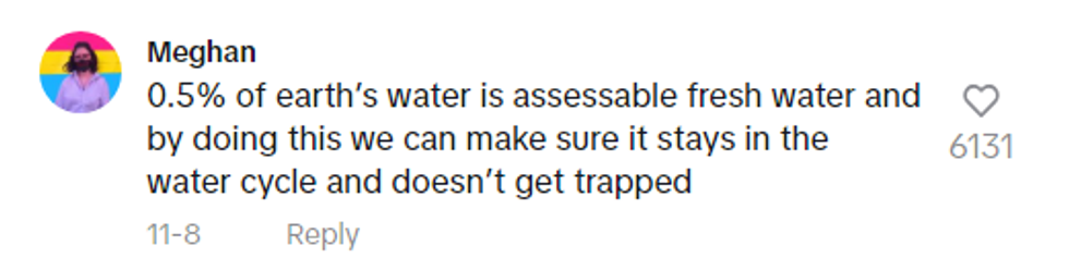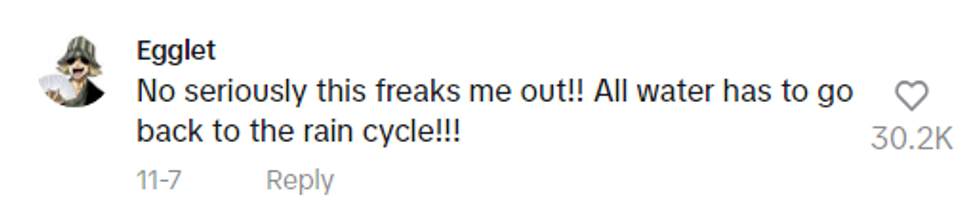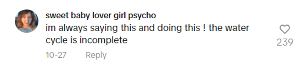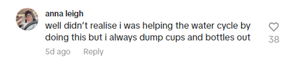 The TikToker pointed out that other liquid sources, like sports drinks and soups, were important to dump out, as well, as they also contain water and will contribute to the larger cycle.