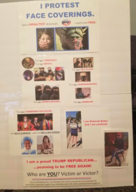 She also came in prepared with a poster board showcasing some bizarre images, including one of the Statue Of Liberty wearing an American Flag face mask.