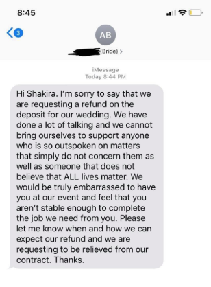 A wedding photographer did just that recently when, in response to an Instagram post she made in support of Black Lives Matter, one of her clients became offended and demanded a refund. And her epic response has people all over the internet cheering her on.