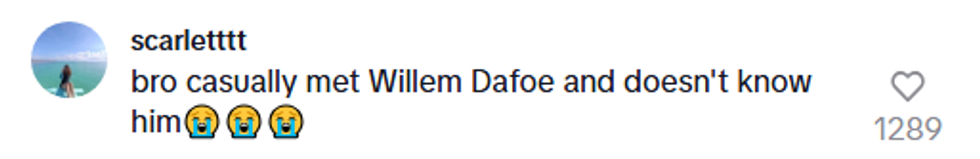 Even in the comments section, some remained flabbergasted by the TikToker's interaction with Dafoe.