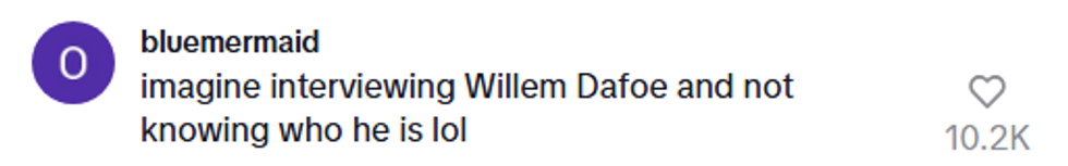 Fellow TikTokers were flabbergasted by the video, not because of the interview questions but because the TikToker genuinely did not seem to know who Willem Dafoe was.