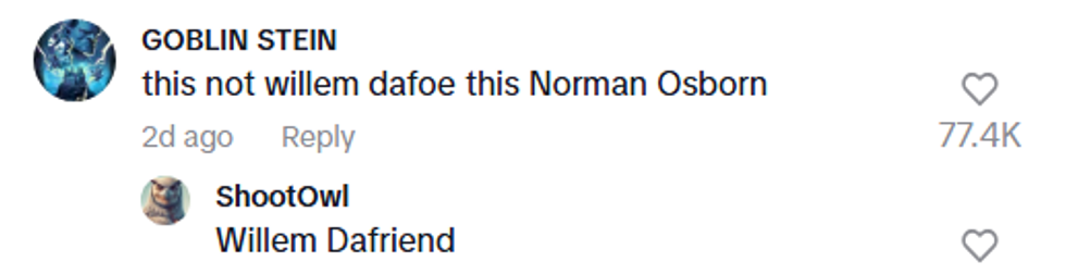 Others quipped about who Willem Dafoe "really" was: Norman Osborn, the scientist and Green Goblin from Spider-Man.