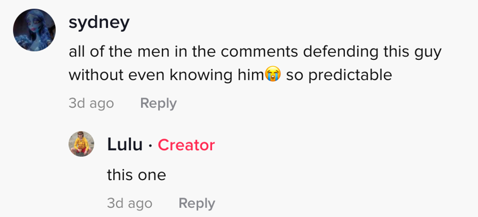 On the other side, some hurt men from the other side of TikTok attempted to flame the comments section of the video, trying to point out how the woman must have been in the wrong.