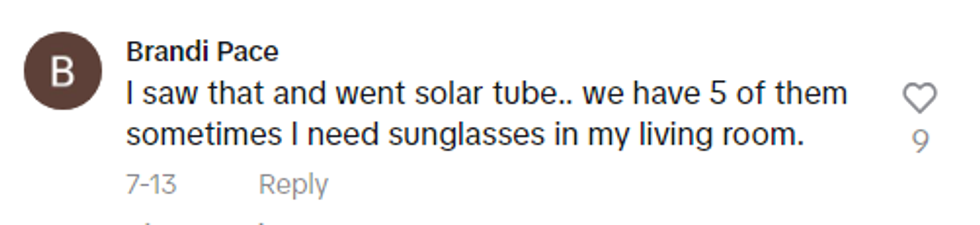 The TikToker further proved her point by going outside and pointing out the dome that was on her roof, which contained what is called a solar tube, created by Solatube International.