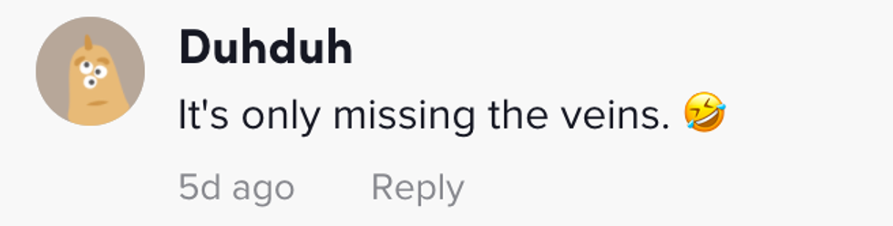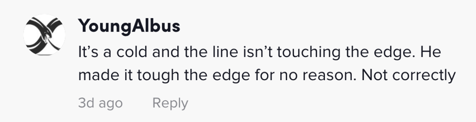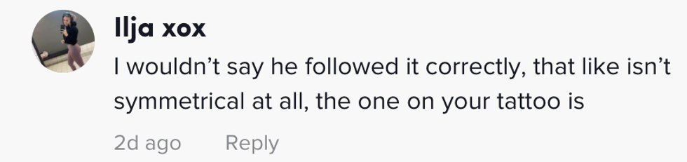 The design, shown at full in a follow-up video, fell apart when the artist decided to follow the stencil a little too closely and ignore a line on the kneecap that looked questionable at first glance.