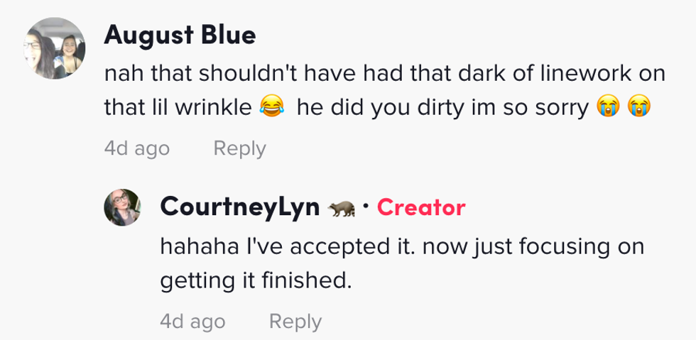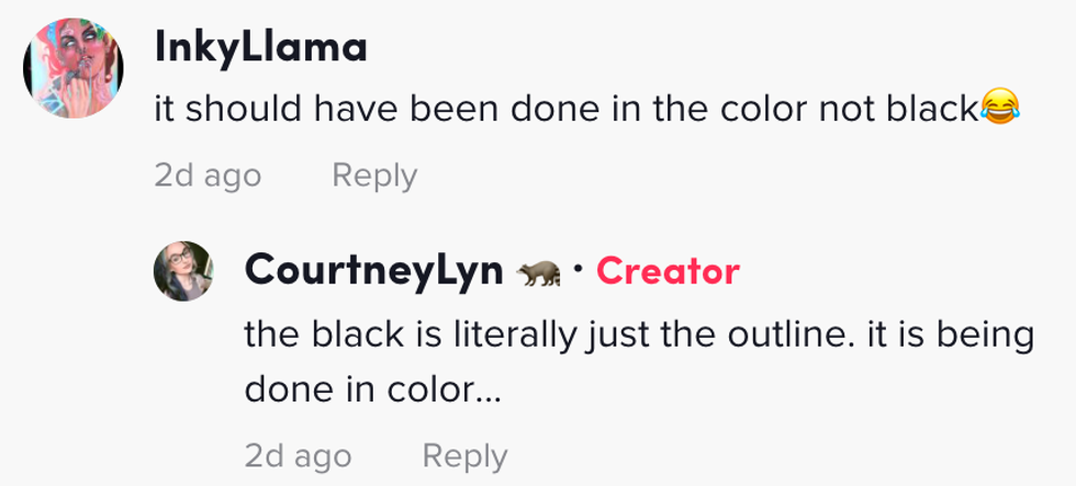 "Yes I'm getting it colored in, yes I'm finding a different artist," Courtney clarified in the comments.
