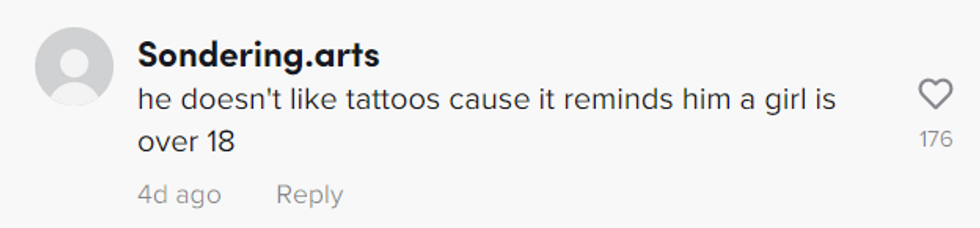 Not to mention the possible implications of him only dating women who are tattoo-free.