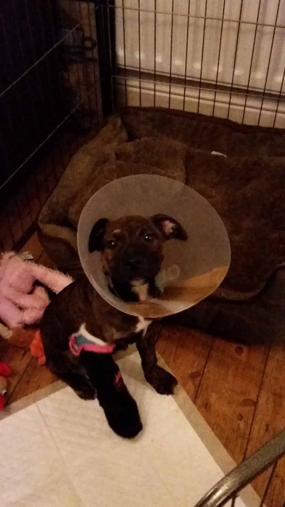 After visiting a local shelter, she fell in love with a Staffordshire Terrier-cross, Lister, who had been left in a sorry state, nursing a broken leg that eventually had to be amputated.