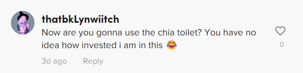 Spagnola had covered the entire toilet, including the seat, base and tank with chia seeds and planned to water the entire toilet three times a day.