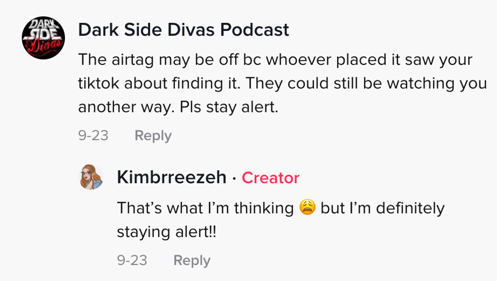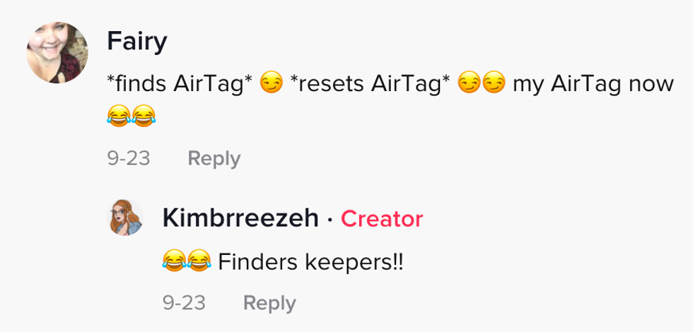 Thankfully, the morning after she received the notification, @kimbreezeh was no longer being tracked. Unfortunately, though, she never did receive the AirTag or find its hidden location.