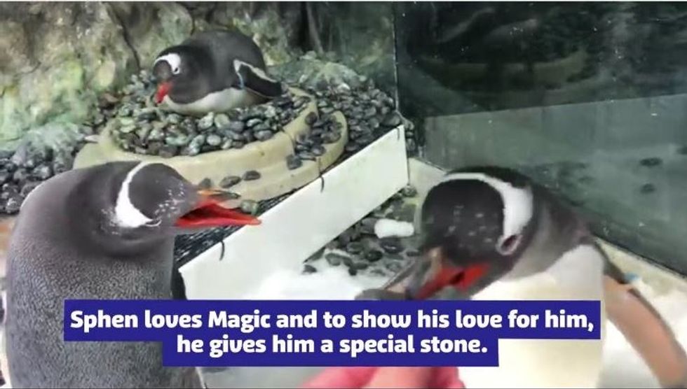 Sphen and Magic, the two Gentoo penguins were given a foster egg to nurture and things are looking good. Each penguin is taking turns caring for the egg while his "husband" watches out for intruders. The world has fallen in love with these two guys.