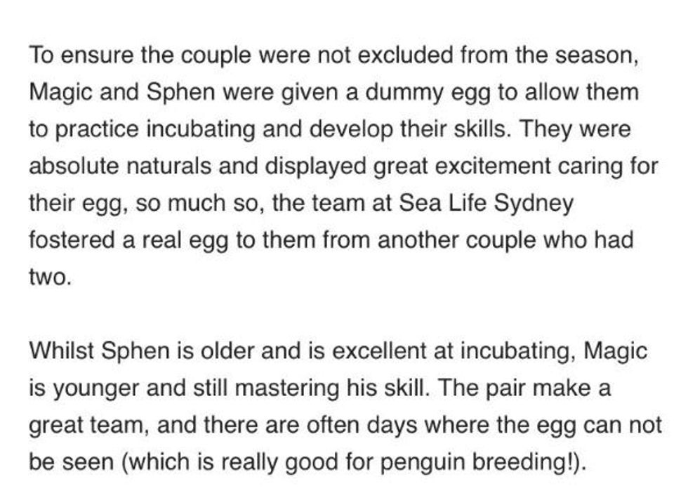 In one of the most adorable stories to come along in a very long time, two penguins at the Sea Life Sydney Aquarium have fallen in love, exchanged special rocks to prove their commitment and are now raising an egg. Oh, and they are both male.