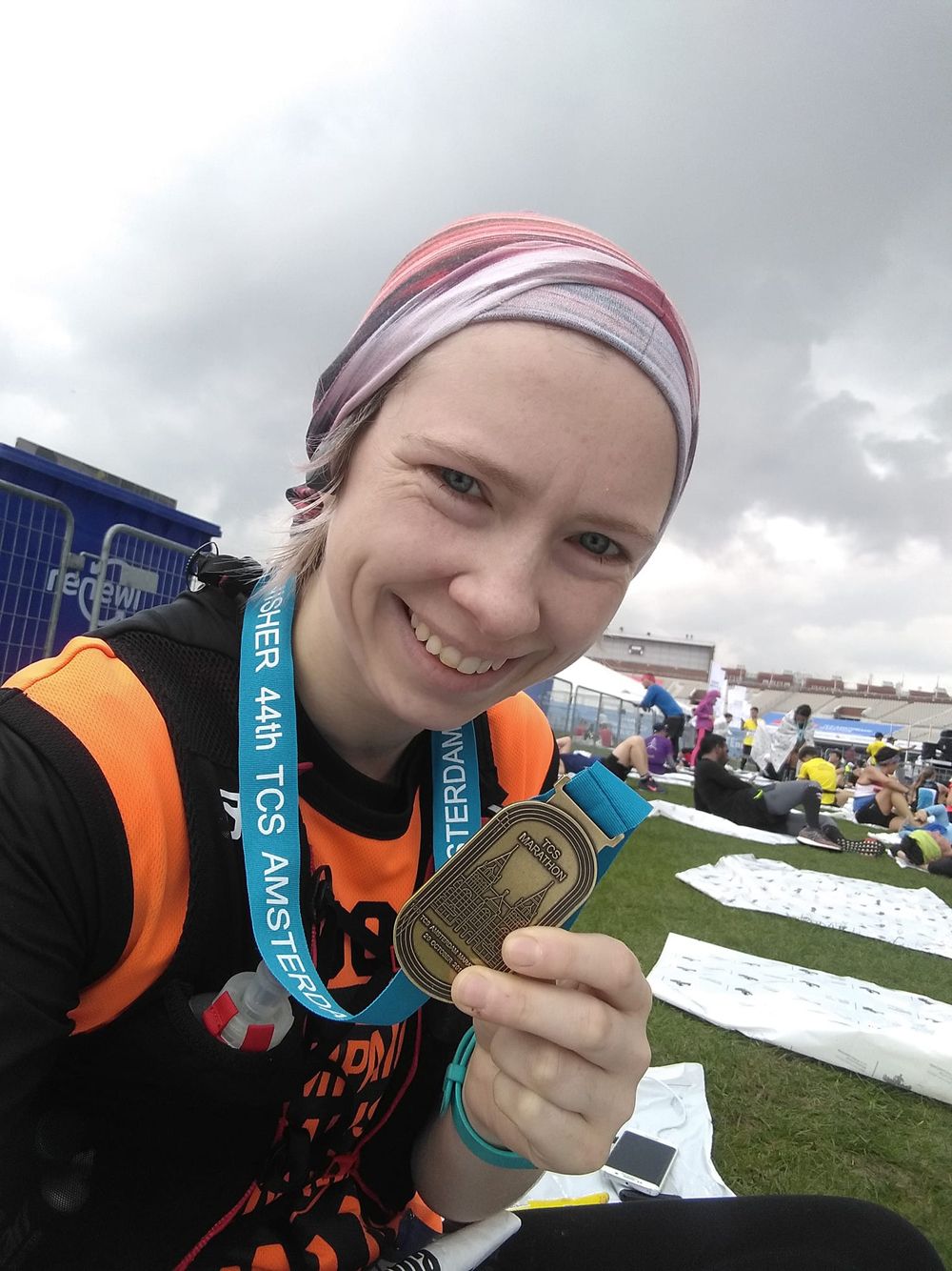 So, from April 7 to December 22, 2019, Emma completed 12 marathons everywhere from Manchester, to Loch Ness, Amsterdam and Portsmouth, running 314 miles and raising over £3,800 ($4,923) for CALM.