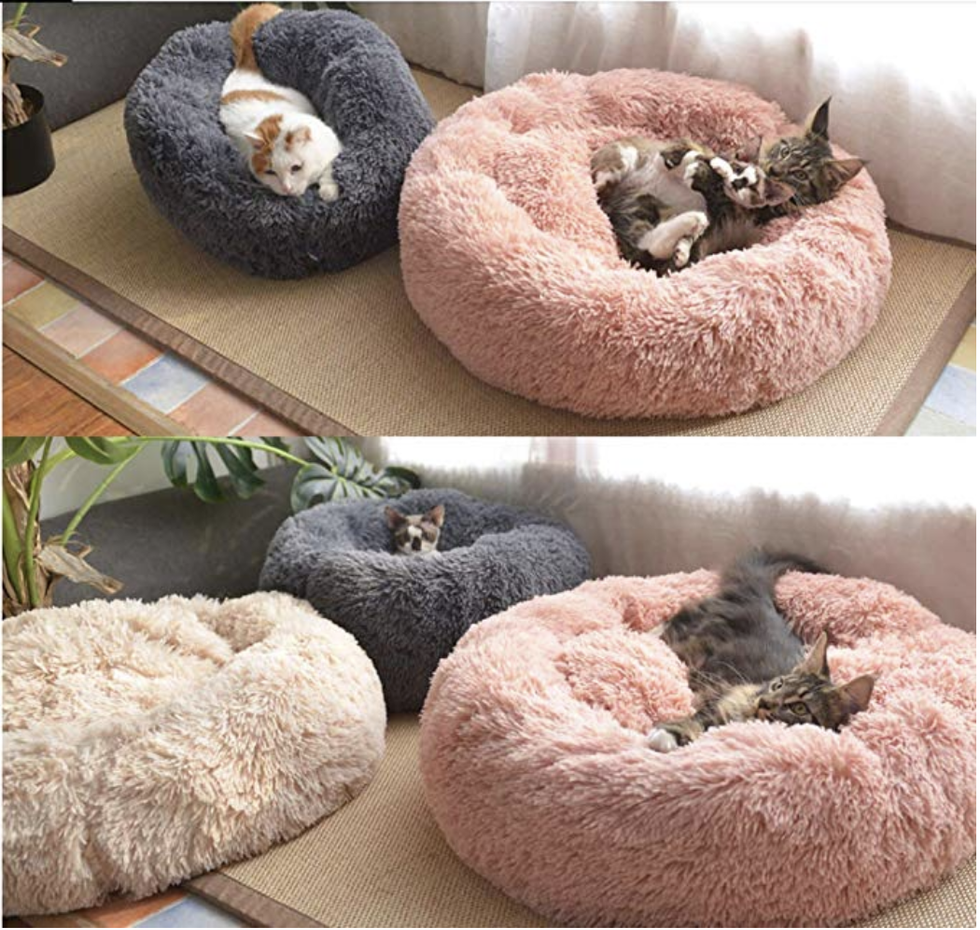 If you have a feline (or canine) friend who needs a comfy spot to lay their head, the Soft Plush Donut Pet Bed available here in two sizes and four colors.