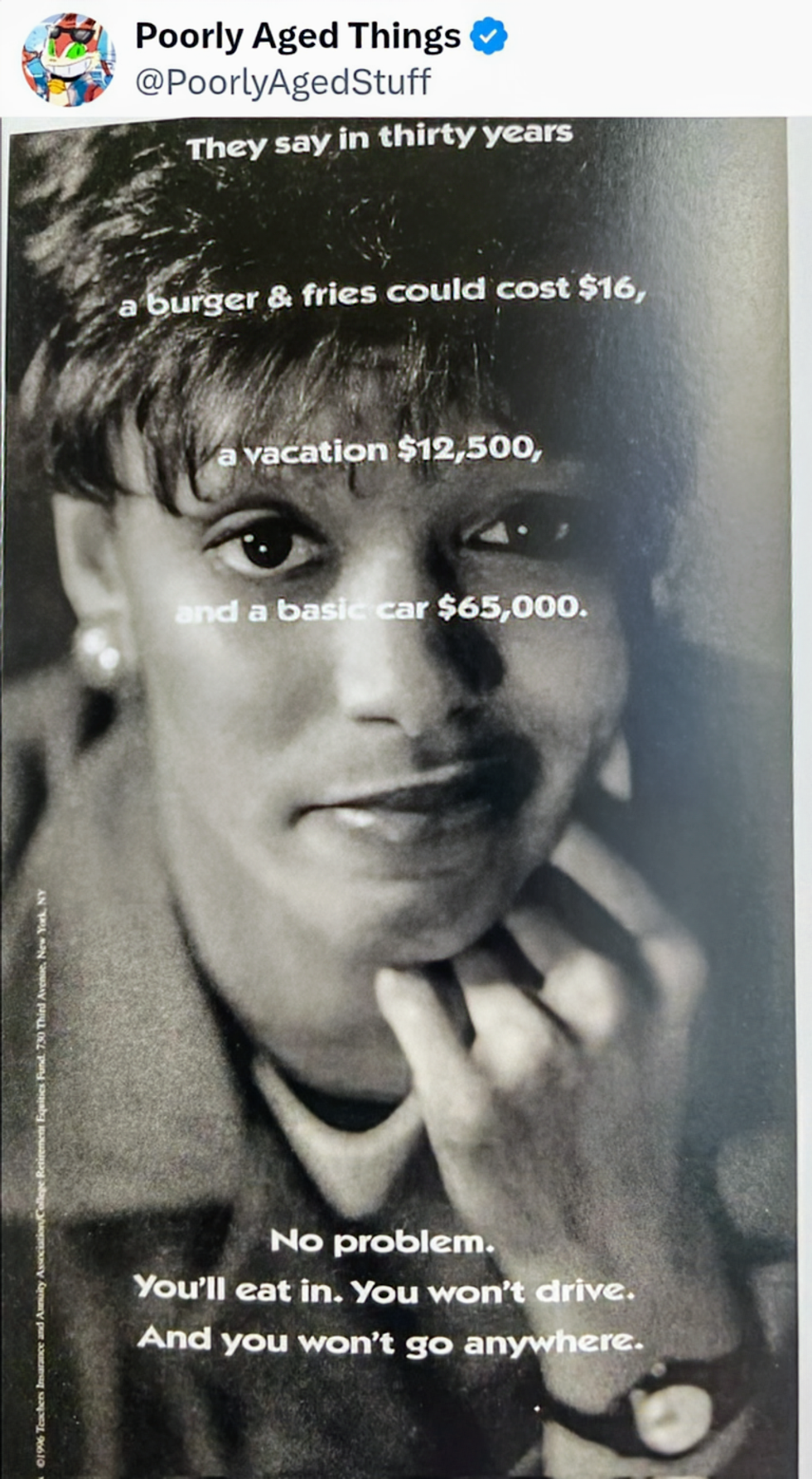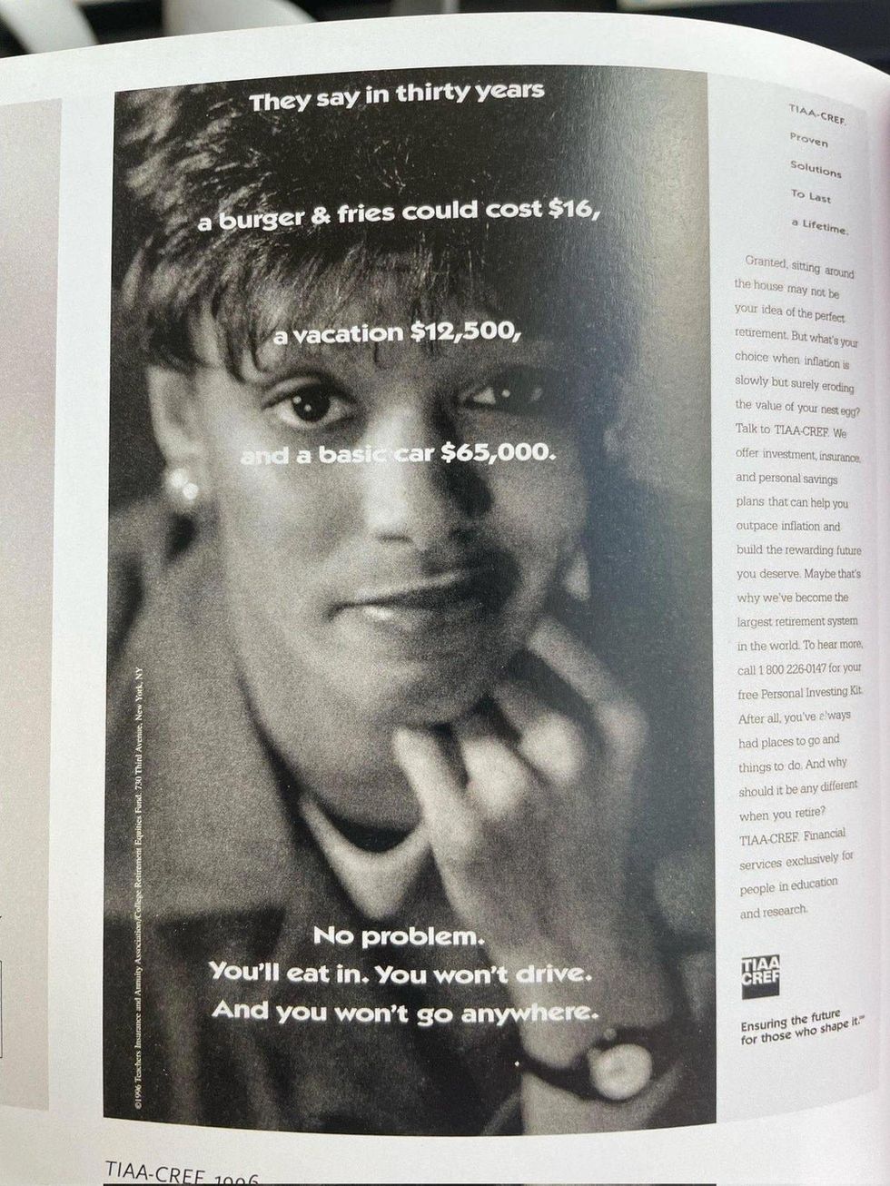 "It was easy to do the math. We took the average rate of inflation and extrapolated out thirty years. Then we wrote the ad."
